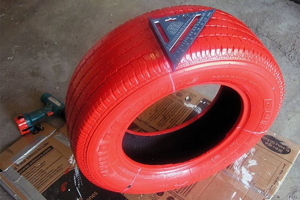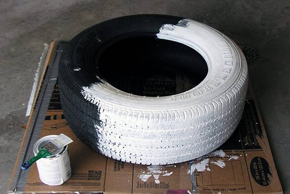 Старая шина может испортиться, от нее могут отвалиться небольшие кусочки резины, поэтому ее поверхность лучше загрунтовать и покрасить. Это необязательно, но так она будет выглядеть красиво и к тому же будет защищена от износа из-за погодных условий. Хорошая латексная грунтовка и краска обеспечат красивую глянцевую поверхность, хотя и краска из баллончиков также будет отлично работать. Дайте шине полностью высохнуть после мытья, а затем нанесите один слой грунтовки. Когда грунтовка высохнет, нанесите слой краски.