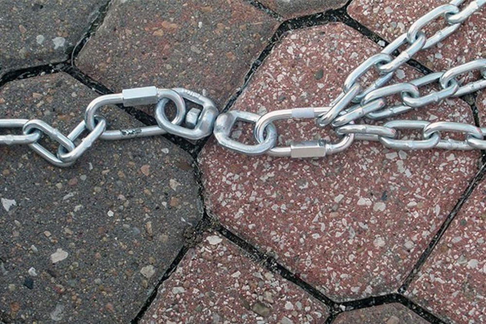 Теперь можно зафиксировать цепи на рым-болтах с помощью карабинов. Убедитесь, что все соединения надежны.