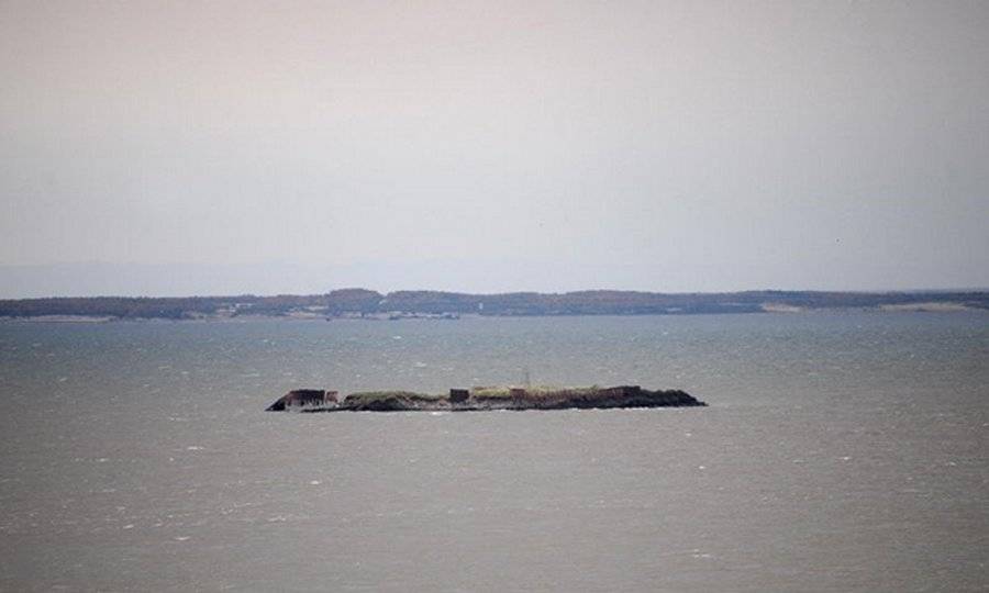 За три года работы успели построить железнодорожные ветки к тоннелю (около 120 км железнодорожного полотна в Хабаровском крае), которые впоследствии стали использовать для вывоза древесины, прорыли ствол шахты, а также создали искусственный остров на мысе Лазарев. Вот он.