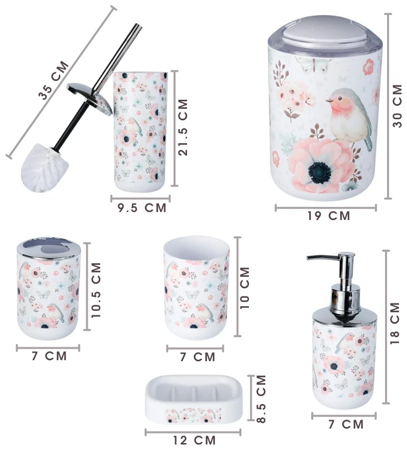 Комплект изделий из 6 элементов состоит из высокопрочного АБС пластика и дополнена хромированными деталями. Простота дизайна и приятные цветовые решения позволят коллекции гармонично вписаться не только в интерьеры, придерживающиеся современного минимализма. Но и в нежный Прованс и в строгую классику или скандинавский стиль.