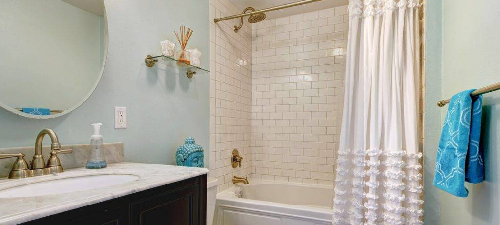 Самым доступным вариантом защиты окружающей обстановки от летящих во время купания брызг, являются полиэтиленовые занавеси. Они уместны в интерьерах стиля модерн, лофт или минимализм.