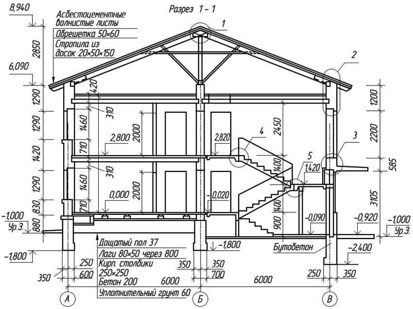 Чертеж сечения фундамента расшифровывает размеры ленточных укреплений дома, глубину их залегания и материалы, которые необходимы для их сооружения.