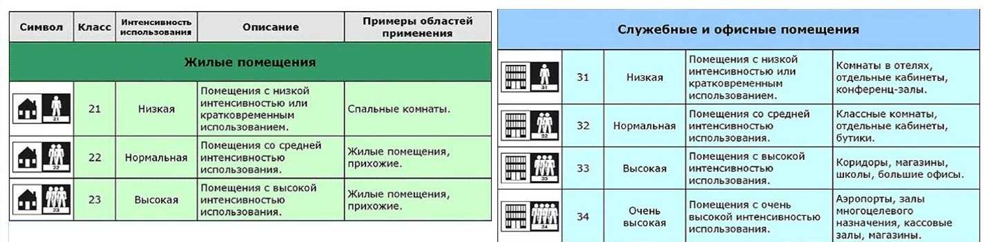 Классы эксплуатации напольных покрытий
