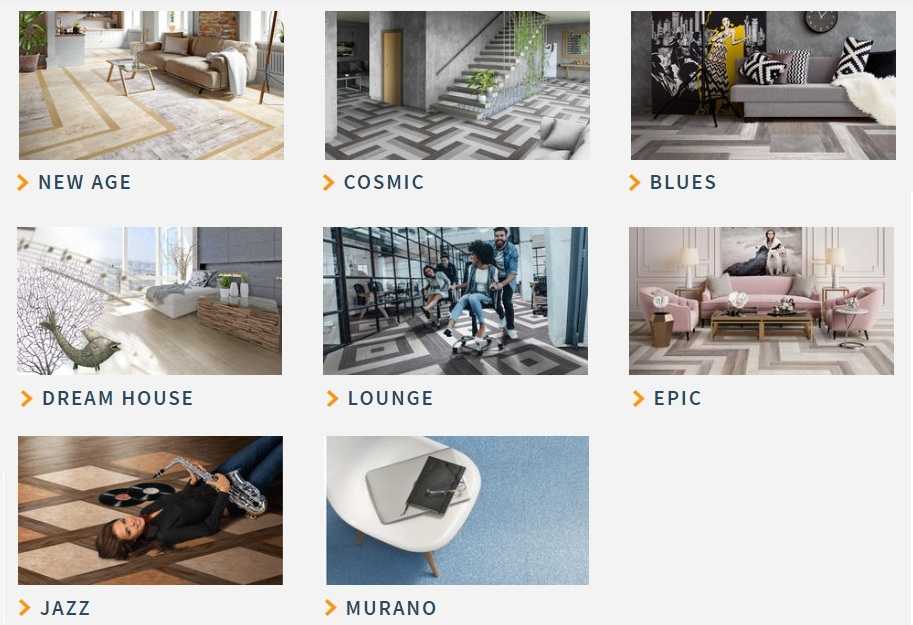 Производитель разработал несколько линеек модульных напольных покрытий, что позволило охватить широкую область применения материала.