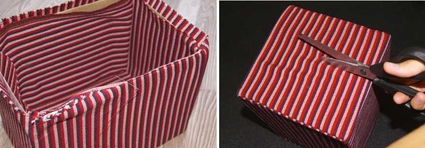 Оборачиваем тканью стенки коробки