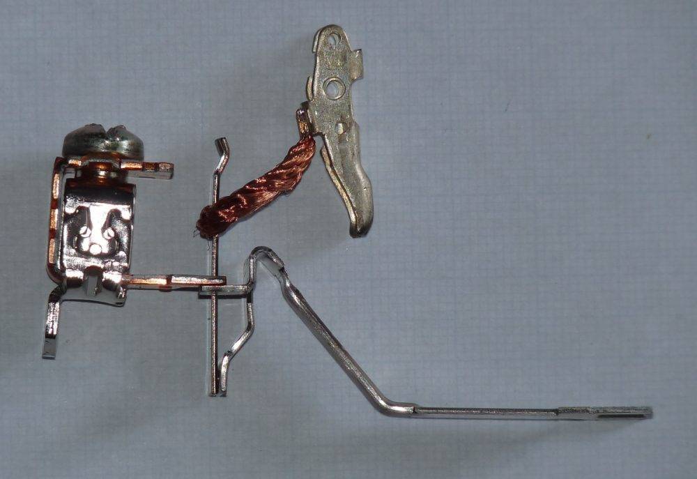Тепловой и электромагнитный расцепители (5 и 6) подключаются в сеть последовательно между подвижным контактом 7 и контактным выводом 10. Для обеспечения высокой стойкости к износу подвижный контакт подключается с помощью медного многопроволочного плетёного проводника.