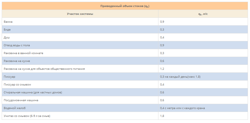 Расчет количества сточных вод
