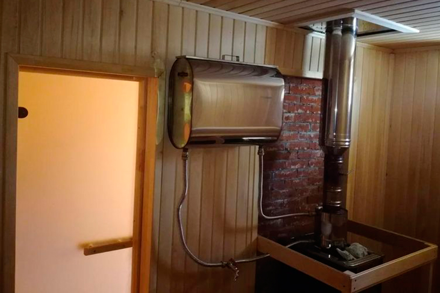 - Нагрев и сохранение теплой воды для использования в помывочном помещении бани.