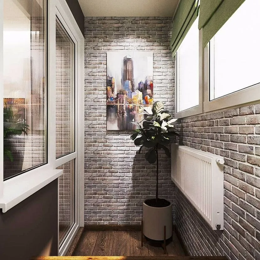 Балкон с акцентом на голых кирпичных стенахИсточник cdn.alumdevelop.ru