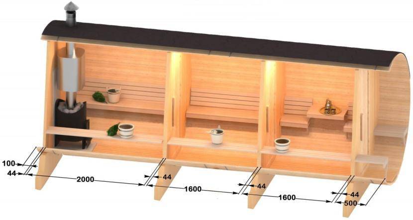 Проект бани-бочки с 3-мя секторамиИсточник grill-landia.ru