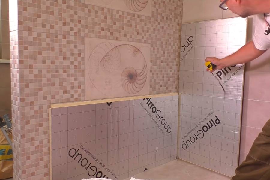 - Нанесение отделки. Оптимальным вариантом для пола и стен является кафельная плитка. На полу целесообразно обустроить систему подогрева, в зимнее время играющую роль отопления. Потолок лучше обшить пластиковыми панелями или алюминиевыми рейками.