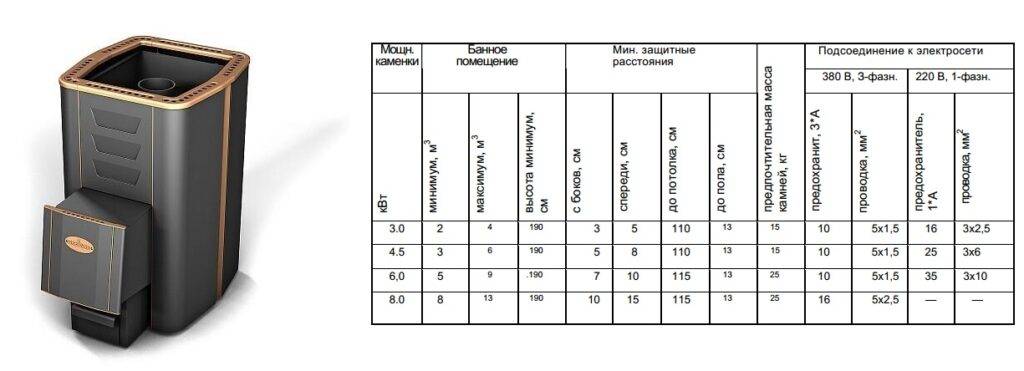 Мощность печи: ✓ Размер парной до 5 м2,✓ Размер парной от 5 до 8 м2,✓ Размер парной от 8 до 13 м2,✓ Размер парной более 13 м2