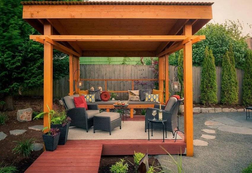 Деревянные беседки с одним скатом имеют простую конструкцию, несложный монтаж и их строительство относительно недорого.