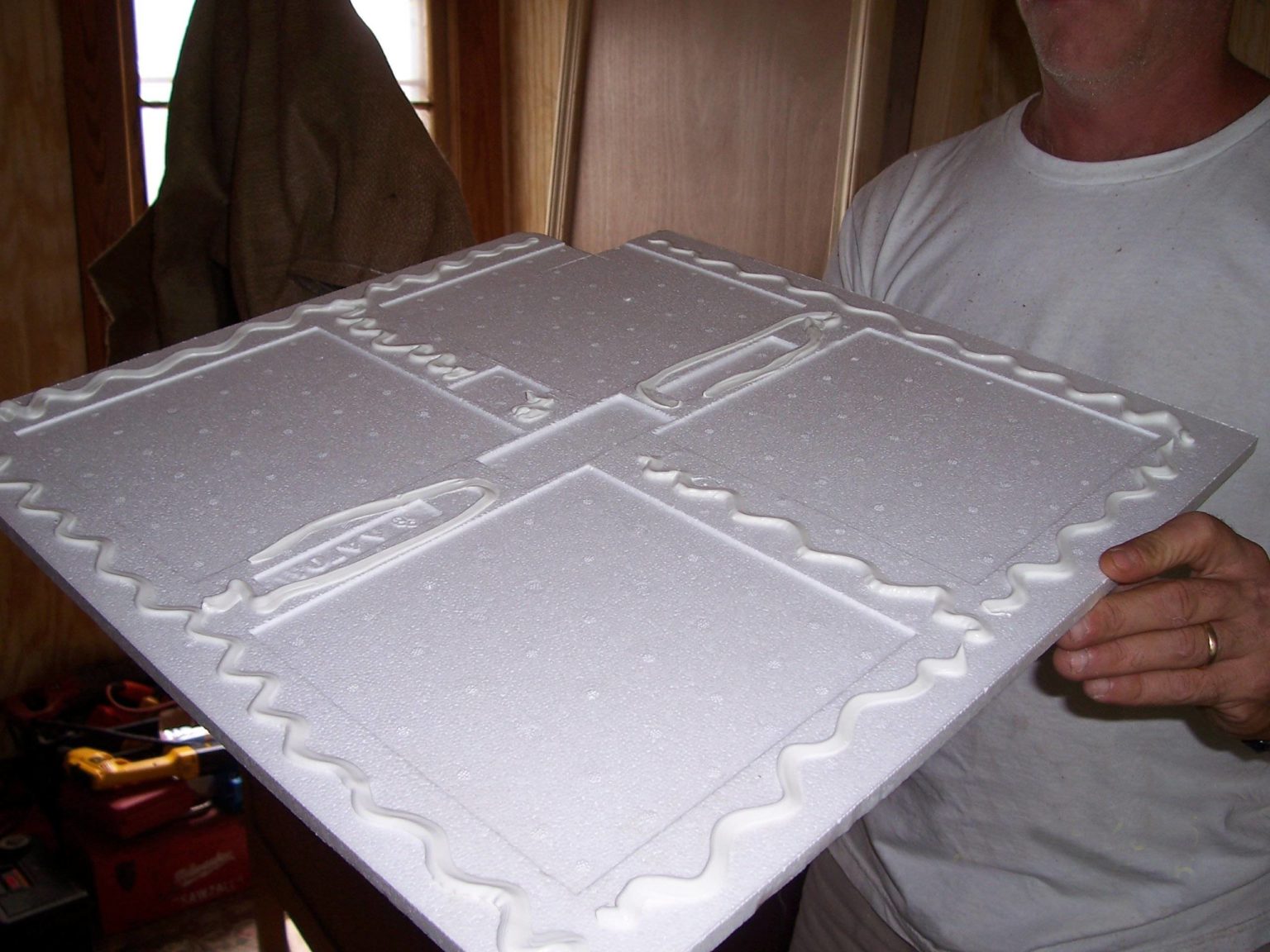 - Хрупкость . Работая с панелями из пенополистирола, необходимо проявлять особую внимательность, т.к. их края могут отламываться.
