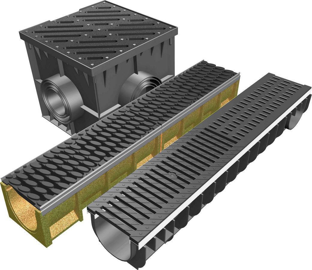 В результате получается довольно широкий ассортимент лотков, выполненных из разных материалов, а значит, все эти устройства имеют отличающиеся свойства. Поскольку от материала напрямую зависит конструкция и характеристики лотка, то классификация водоотводных лотков обычно осуществляется именно по типу используемого для их производства сырья.