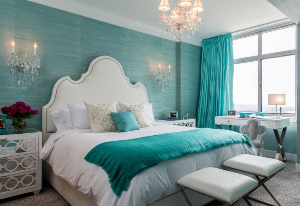 Обустраивая спальню, важно не переборщить с сильными оттенками. Можно использовать следующие варианты решений, выбрав в бирюзовом цвете: