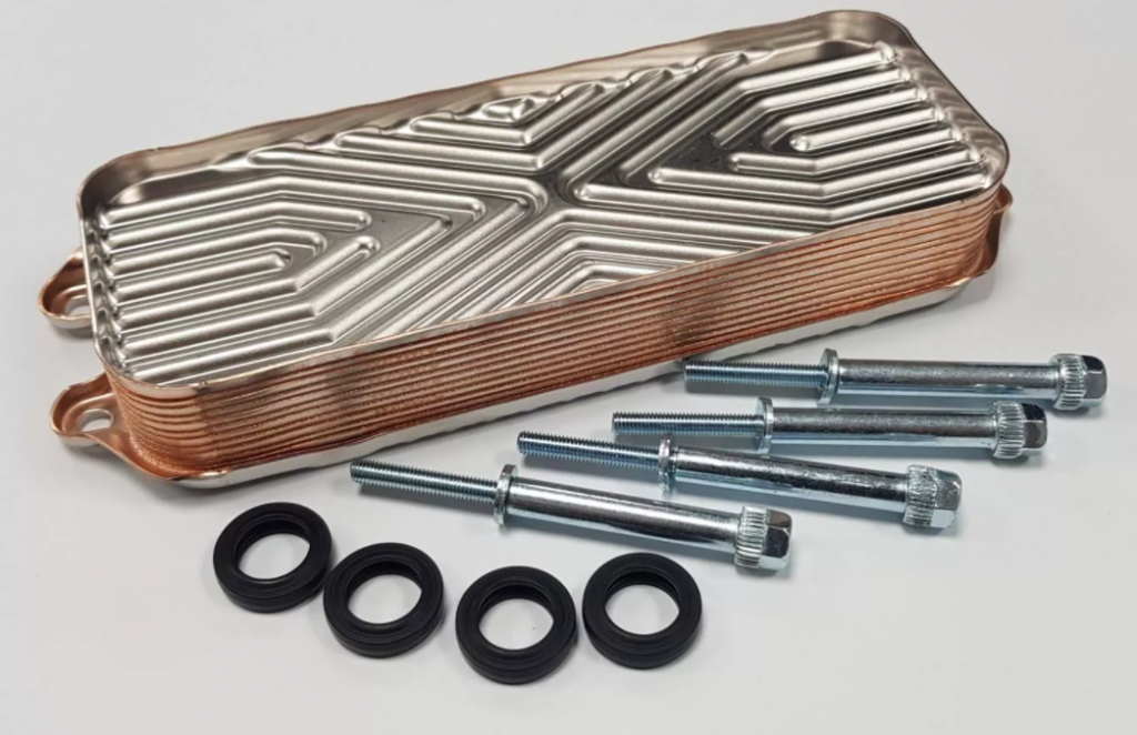 Вторичный теплообменник нужен для нагрева воды в двухконтурном газовом котле, осуществляющем и отопление, и горячее водоснабжение. Это надежная конструкция, состоящая из системы полых пластин, внутри которых циркулирует вода.