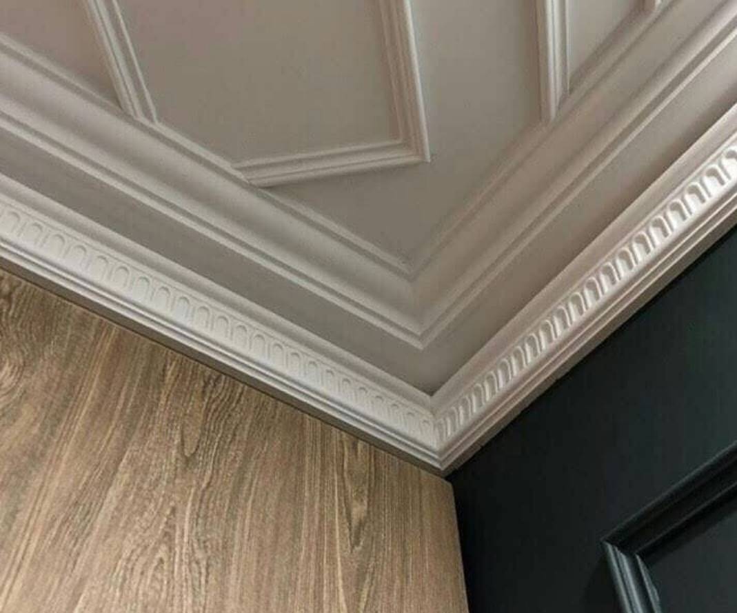 - Для отделки помещения с большим количеством стыков или ломаных углов используйте прочные и гибкие галтели из полиуретана. Другие материалы будут часто ломаться или деформироваться при установке.