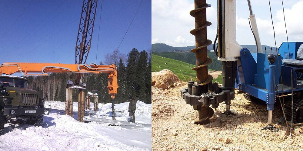 Используются и более мощные установки на базе грузовых машин ЗИЛ, укомплектованных составными бурами. Эти механизмы оснащены отдельными шнеками для углубления в грунт до 15 метров. А техника на гусеничном ходу дает возможность бурения скважин для фундамента до 24 метров в глубину.