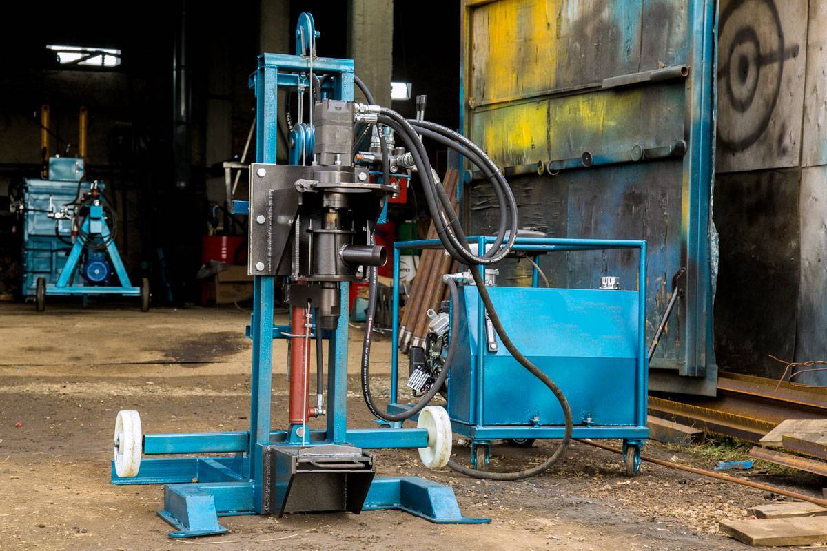 Основа ударной конструкции – это тренога, в центре которой расположен ударный снаряд на тросе. Снаряд по форме напоминает гильзу или стакан с острой кромкой для разреза грунта. Трос резко опускается вниз, и груз наносит удар по почве, затем затягивается лебедкой в изначальное положение.