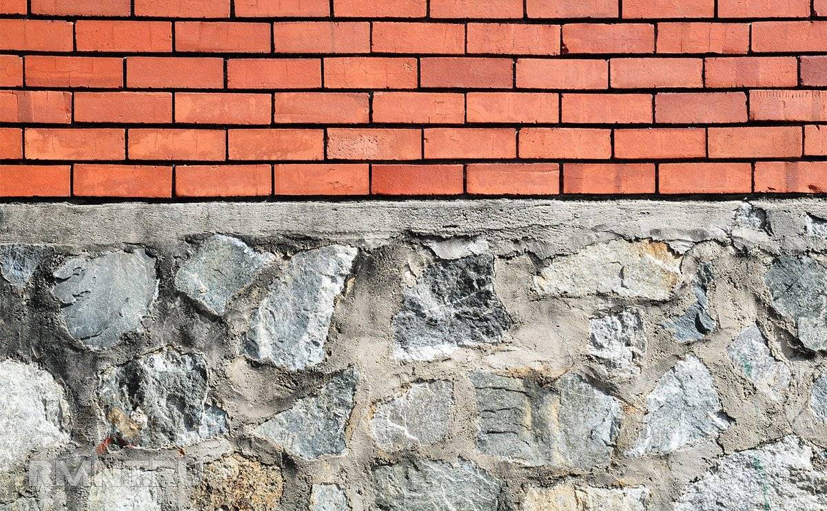 Крепление кирпичной облицовки с надземной частью фундамента производится укладкой тычкового ряда кирпичей, заделываемых на полкирпича в бутовую кладку, через каждые 4-6 ложковых рядов.