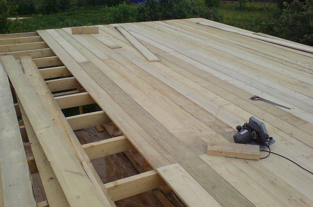 - Монтаж настила поперек лаг из обрезной доски 150х40 мм.