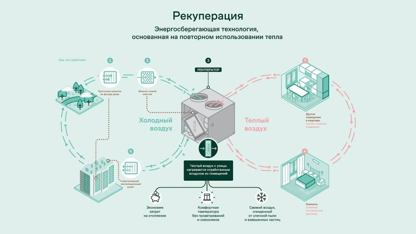 Схема работы устройства предусматривает наличие внутреннего блока, расположенного внутри здания, где нужно поддерживать нужные параметры воздуха.