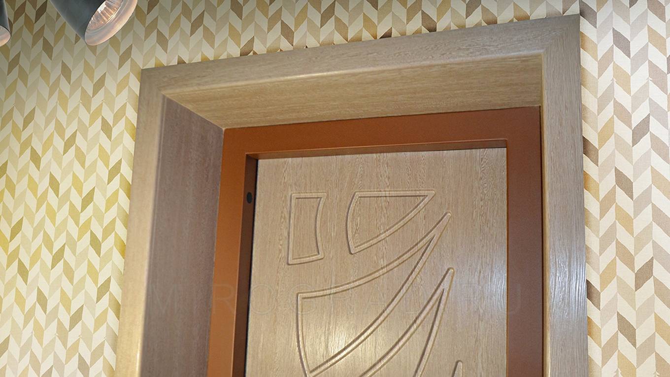 Оформление поверхностей самого полотна, откосов при помощи МДФ, уступает по стоимости деревянному декору, но внешне практически не отличается от него.