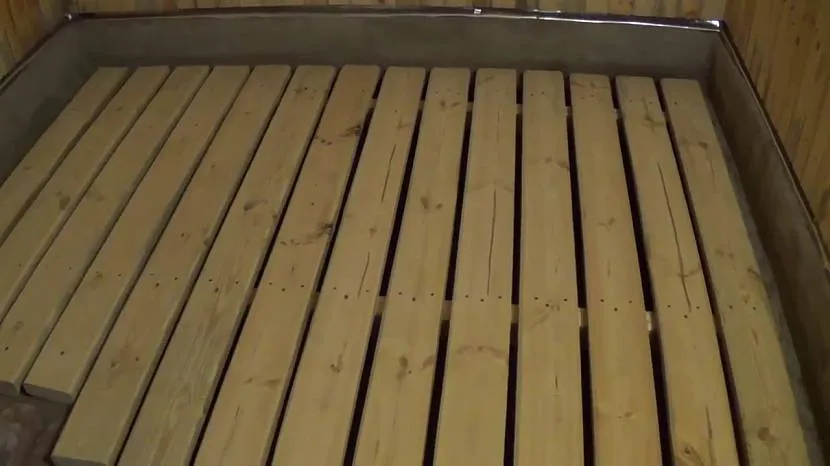 В парной и моечной пол изготавливают из дерева или бетона. Первый вариант имеет две разновидности:
