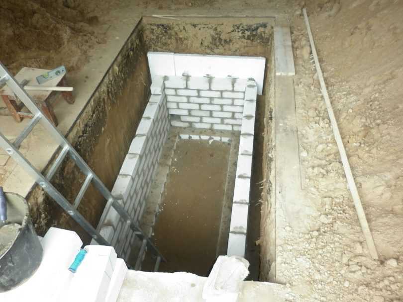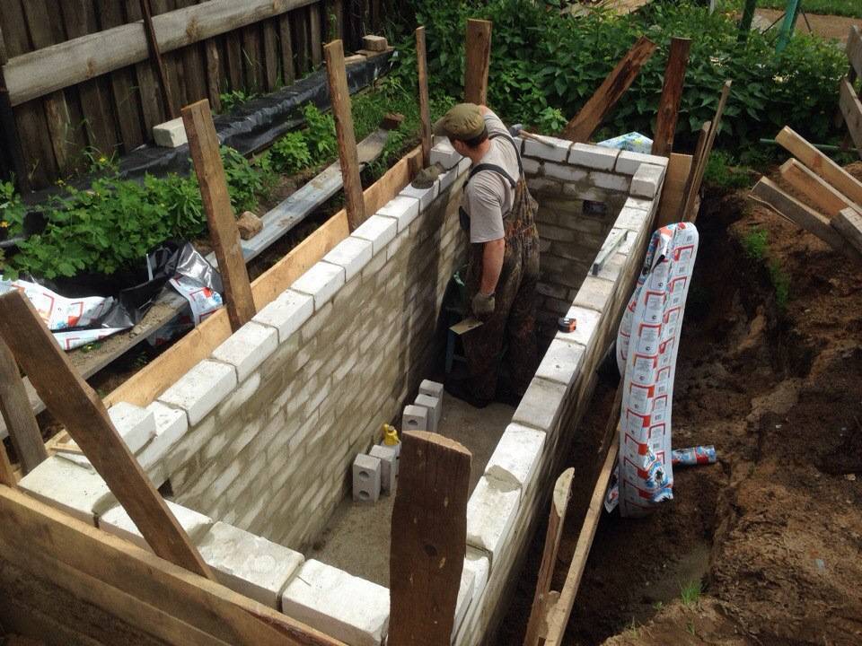 Использовать кирпич можно на сухих, плотных грунтах. Уровень подземных вод должен быть низким. Если вода подходит высоко, лучше стенки ямы делать из армированного бетона.