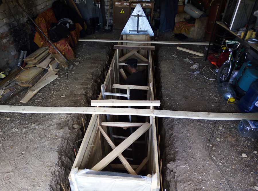 Когда все расчеты будут выполнены, можно начать разметку смотровой ямы. Для этого по ее углам вбивают колья, а между ними натягивают веревку. По выполненной разметке необходимо начать рытье котлована. Земля обычно выносится и хранится перед входом в гараж. Ширину и глубину смотровой ямы следует определить до начала выкапывания котлована.