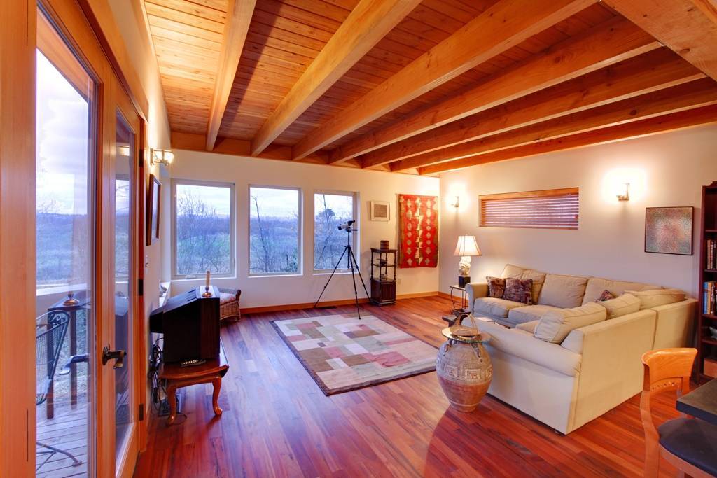 дерево легко вписывается в любой интерьерный стиль. Даже хай-тек и прочие подобные стили довольно неплохо можно обыграть с применением дощатого настила, а что уж говорить об эко-стиле, одном из самых популярных у дизайнеров;