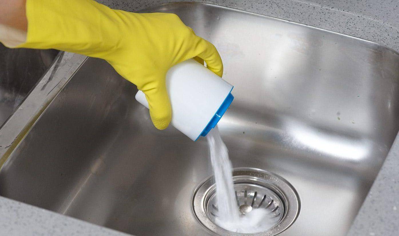 Работать с ними придется осторожно, так как вещество едкое. Чтобы прочистить трубу канализации, в раковину нужно всыпать 1 колпачок средства и залить его горячей водой. Жидкие средства на основе щелочи эффективнее удаляют засор