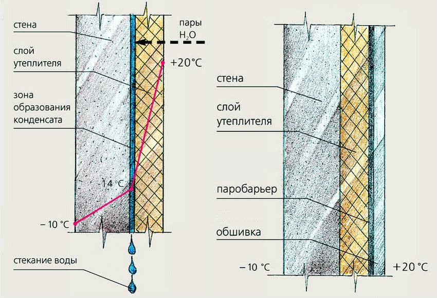 От недостатка внутреннего утепления, связанного с выделением конденсата, можно избавиться путем установки перед минватой пароизоляции. Но все дело в том, что в отечественном строительстве вентиляция проектируется с учетом частичного отвода пара через стены. Если закупорить стены пароизоляцией, придется принимать меры по усилению вентиляции.