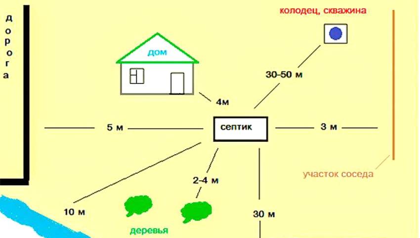 Схема допустимого расстояния скважины по отношению к септику