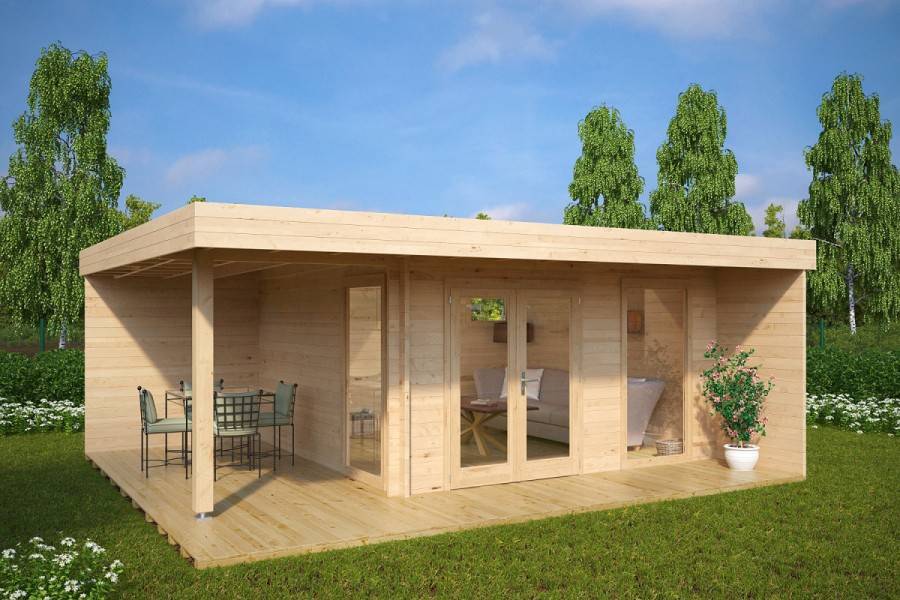 Второй тип является самым распространенным. Такие домики сочетают в себе простоту сооружения и относительно невысокую стоимость с бытовыми удобствами полноценного загородного дома. Они требуют сооружения фундамента, а при необходимости зимнего использования и утепления.