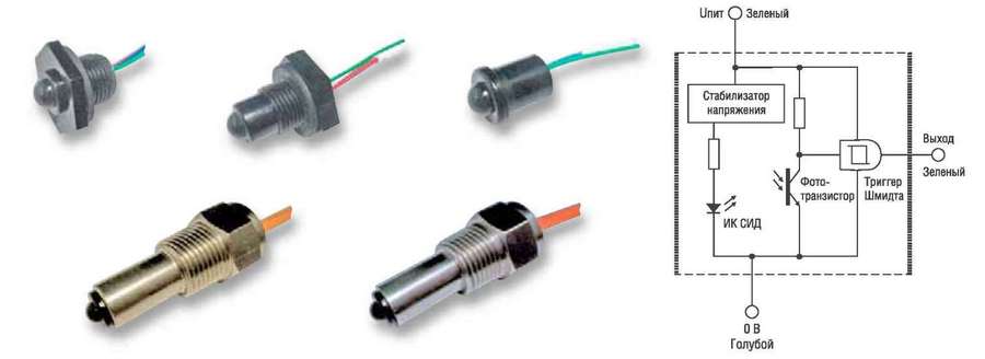 В схему фотодатчика включен фоторезистор, реагирующий на интенсивность светового потока, фотодиод, вырабатывающий заряд, фототранзистор, фототиристор, фотосимистор, синхронизирующий ток из разных источников