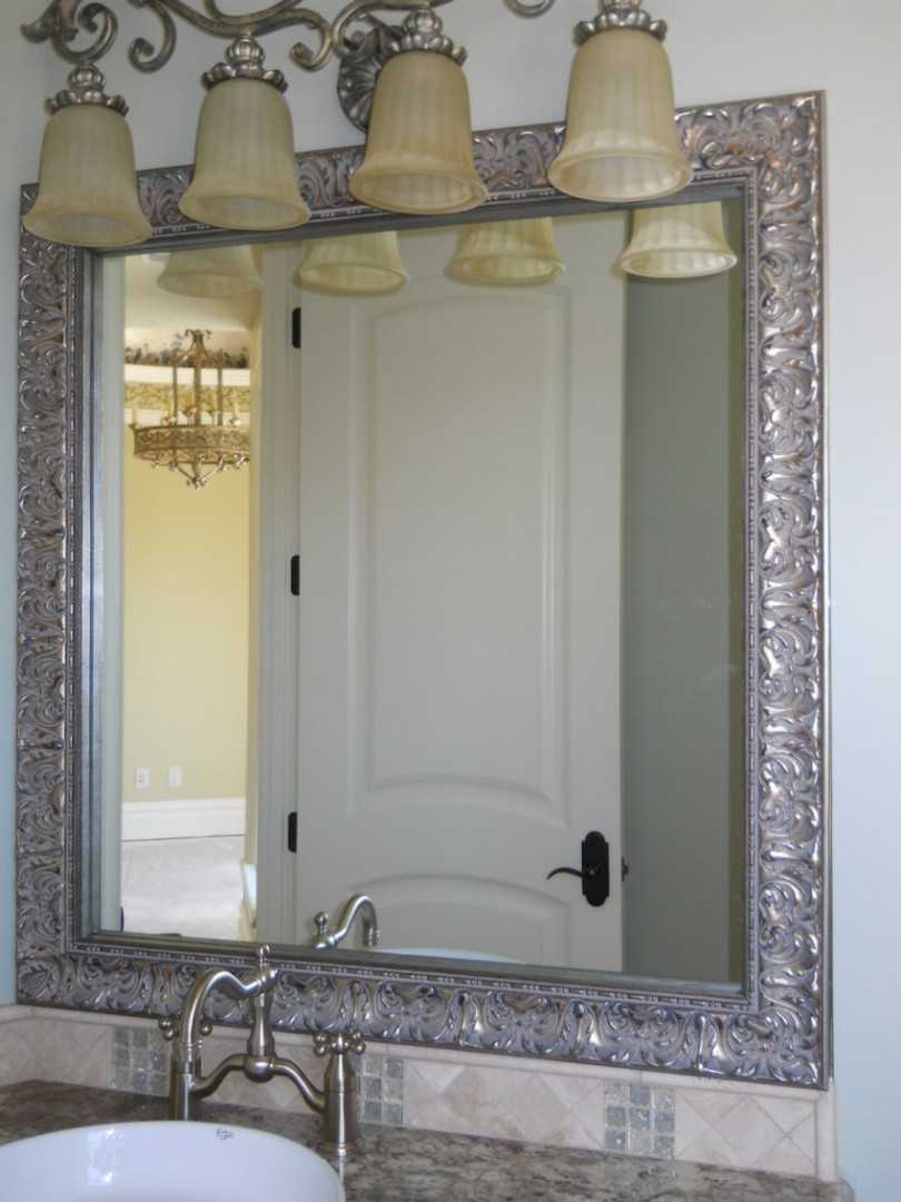 Материал дает волю фантазии, поэтому можно самому выбрать рисунок и ширину. Рама для зеркала из потолочного плинтуса делается просто. Для начала закрепите само зеркало на ДСП или фанере. Такая простая манипуляция дает гарантию надежности.