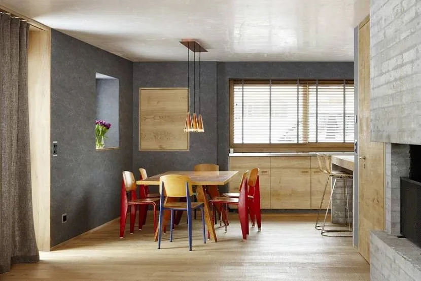 Помещения, все стены которых покрыты декоративной штукатуркой, смотрятся не очень хорошо. Штукатурка арт-бетон в интерьере прекрасно гармонирует со всеми отделочными материалами. Поэтому в качестве контраста или выделения особой зоны в помещении допускается, а иногда просто необходимо использовать дерево, стекло, металл. Форма и компоновка зависят от вкуса хозяина либо условий проекта.