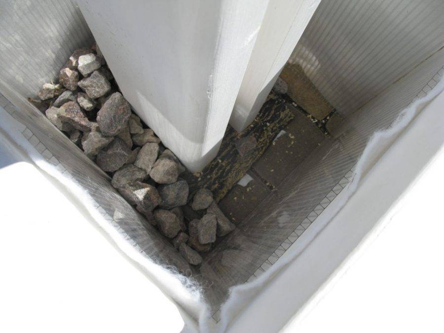 - Устанавливаются бруски согласно чертежу, заливаясь внизу цементным раствором. Предварительно на них наносятся защитные средства.