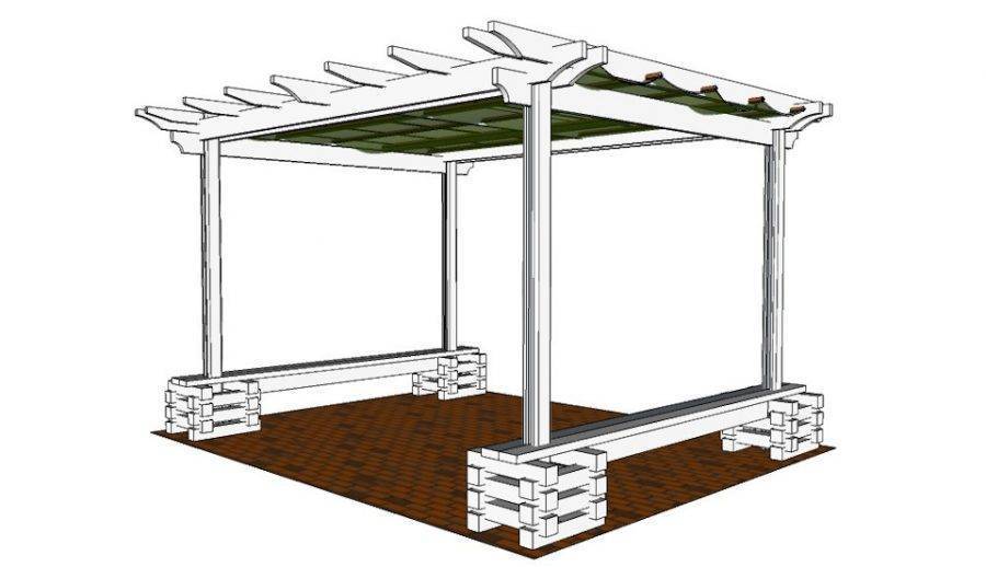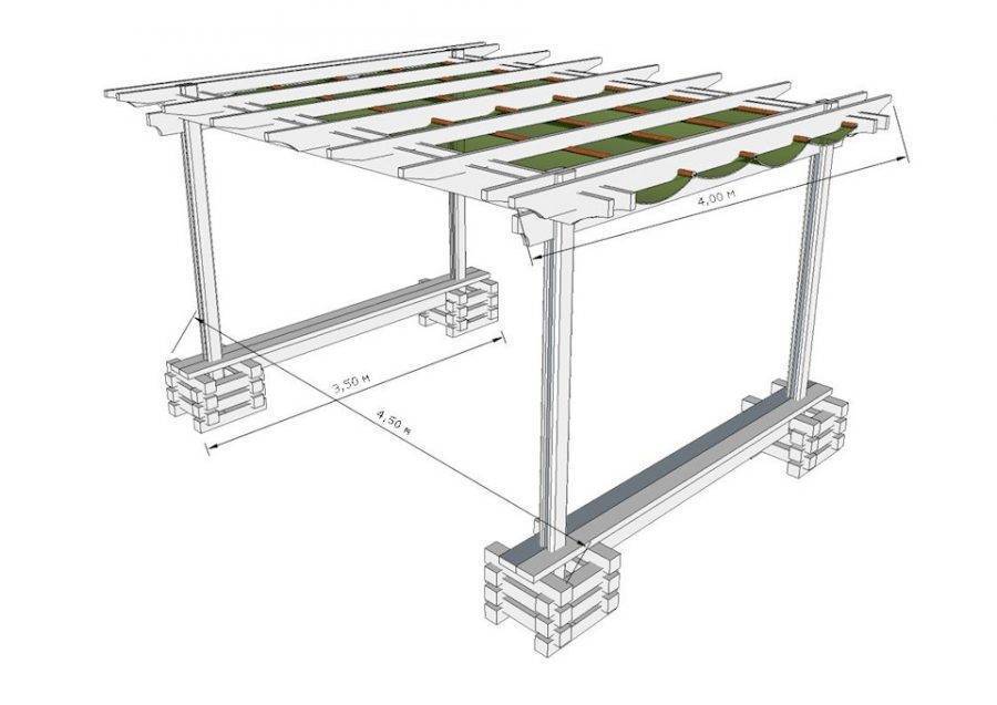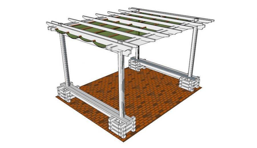 Залог успешного строительства – составление точной схемы конструкции. Нужно учесть, что пергола должна иметь отдельный, а лучше ленточный фундамент.