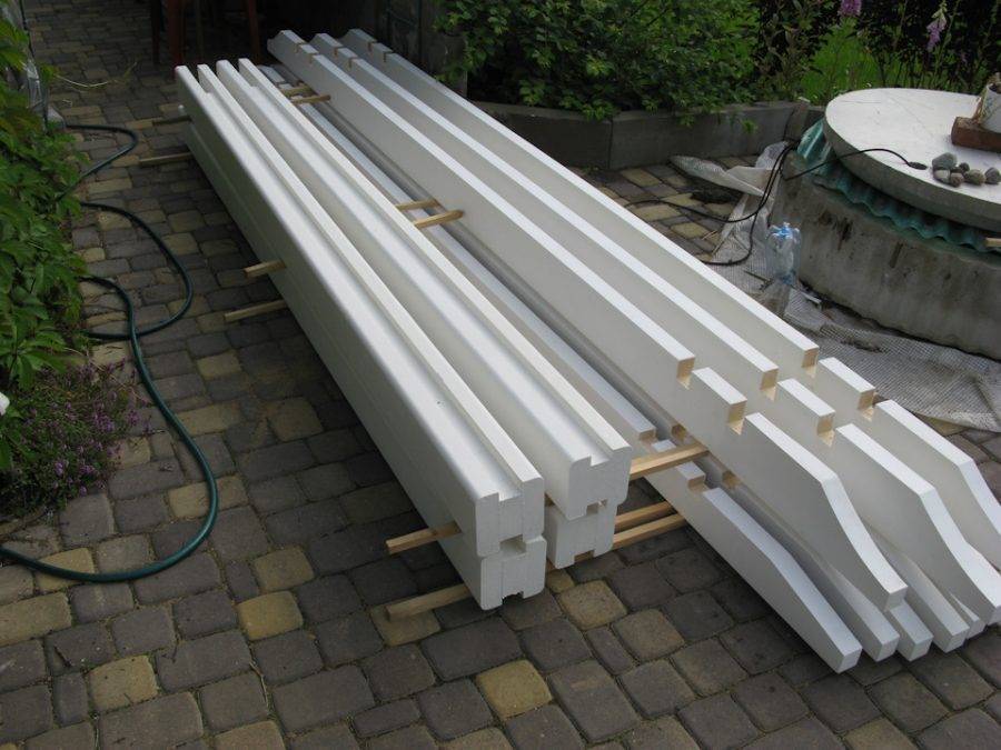 2. После установки вертикальных опор можно переходить к изготовлению опорных балок. Для этого отпиливается доска 5×15 или 5×20 необходимого размера, можно придать ей оригинальную форму на выступающих концах при помощи лобзика.