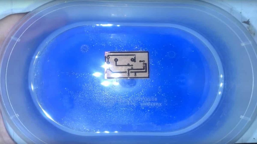 В процессе травки плату нужно переворачивать, а после окончания, достаньте и полудите ее, промойте спиртом и просверлите отверстия для ножек.