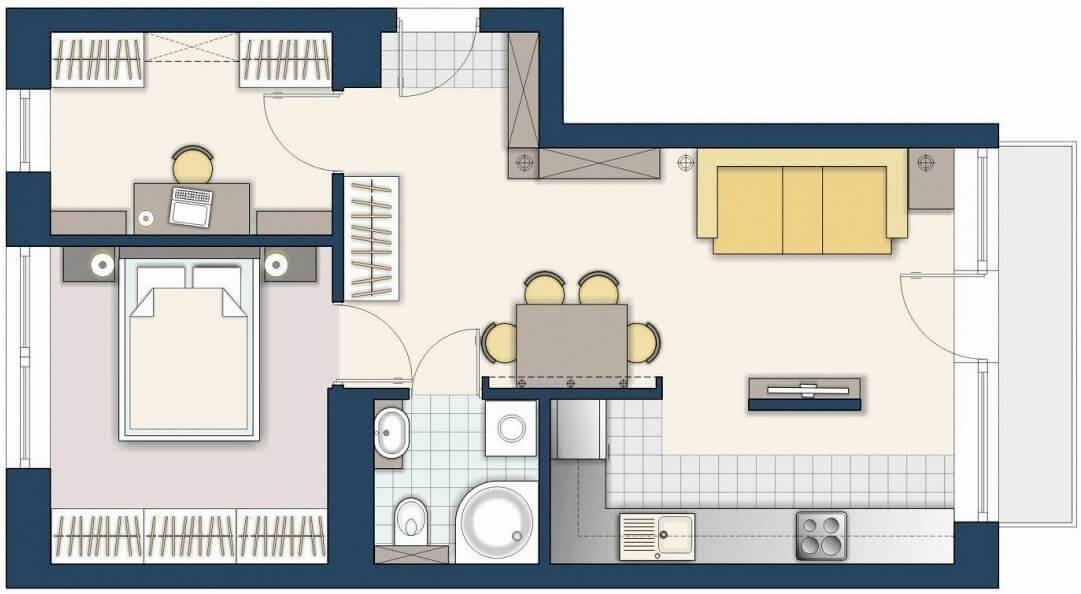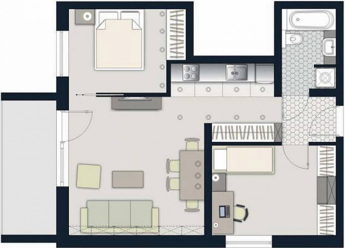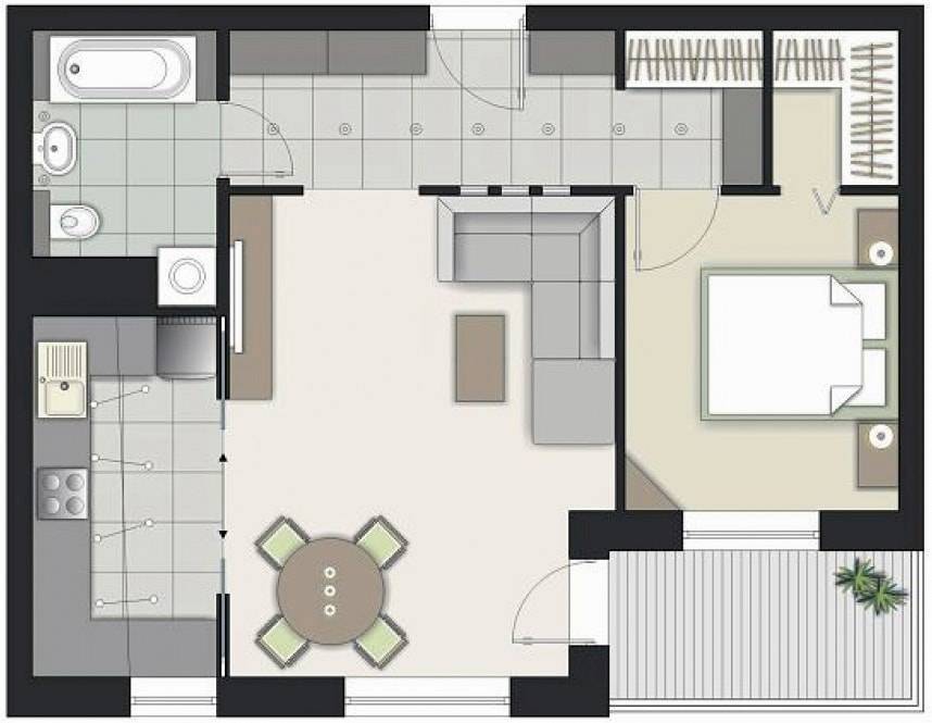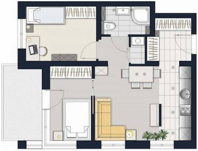 Перепланировка двухкомнатной квартиры 42 квадратных метра