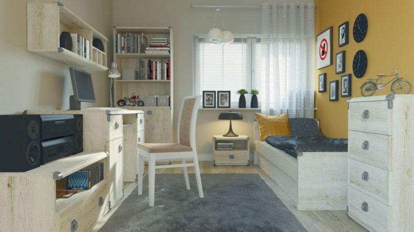 Если комната для подростка обладает небольшими размерами, отдавайте предпочтение модульной меблировке, оформленной в одной цветовой палитре.