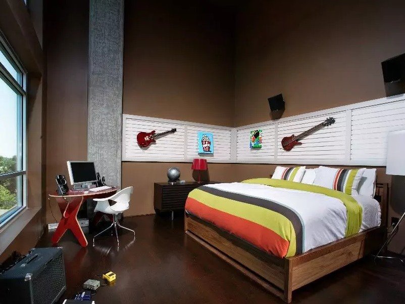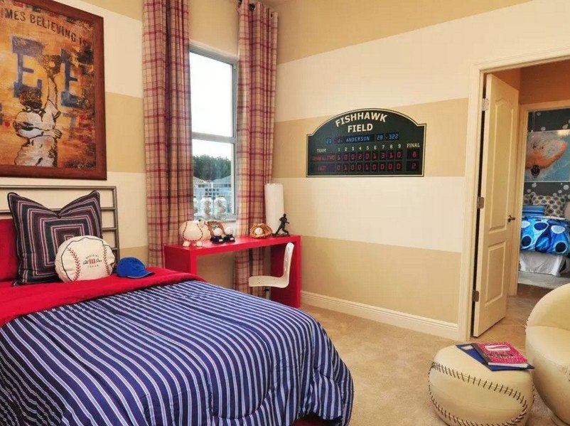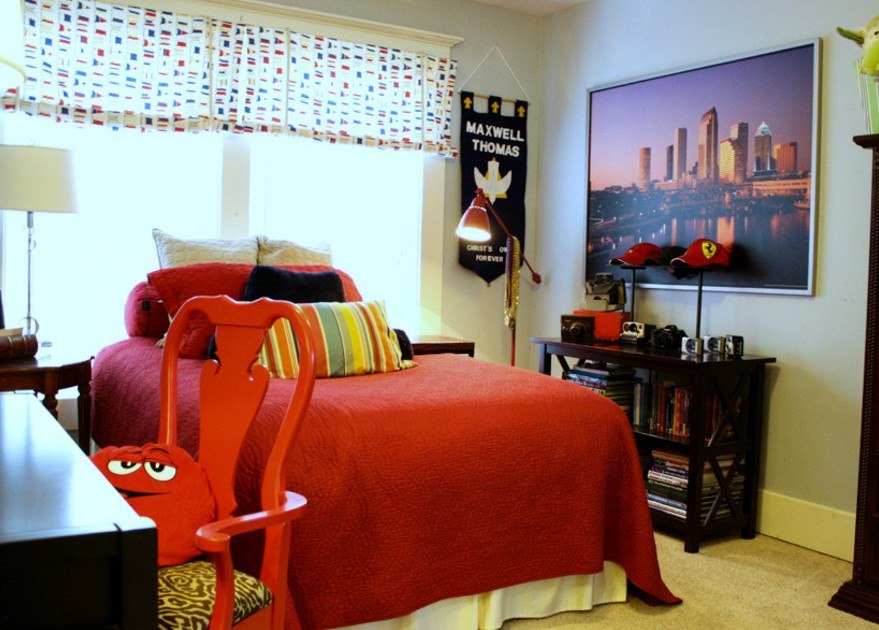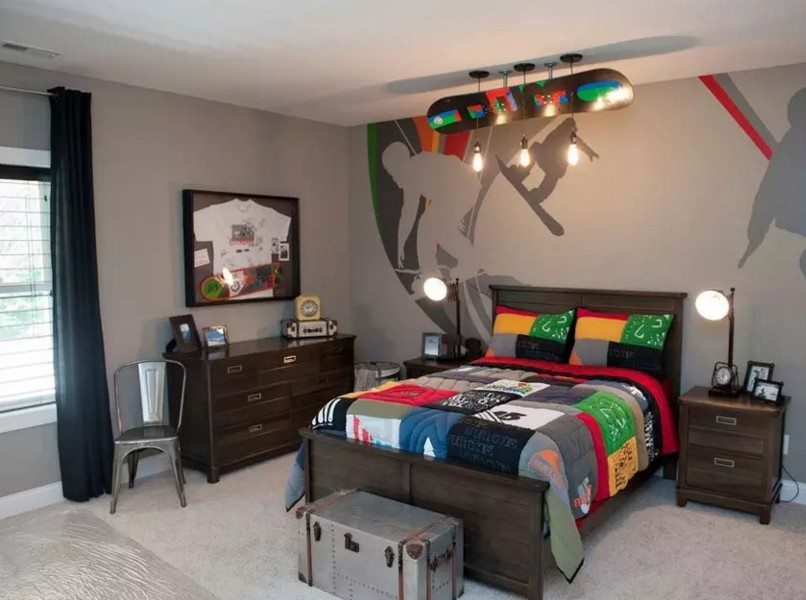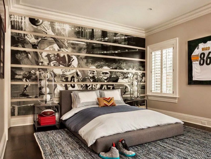 Увлечения и, следовательно, стиль оформления комнаты юноши могут отражать такие темы, как спорт, искусство, кино, музыка, астрономия, компьютерные «герои» игр и пр.