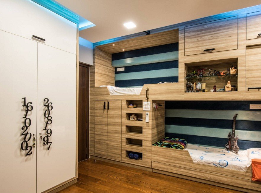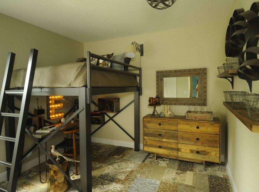 Последний вариант применяют для создания уникальных интерьеров. Под кроватью размещают шкаф, место для учебы или диван для гостей.