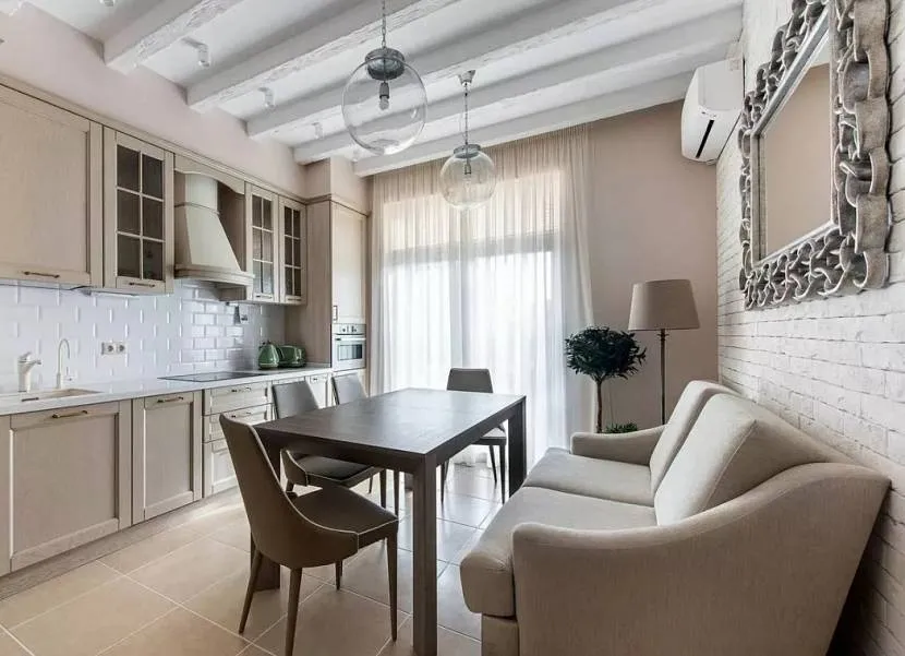 Исходя из кухонных функций сюда формируются необходимые предметы интерьера. К примеру, в квартире где живет холостой парень, явно будет лишним большущий обеденный стол.