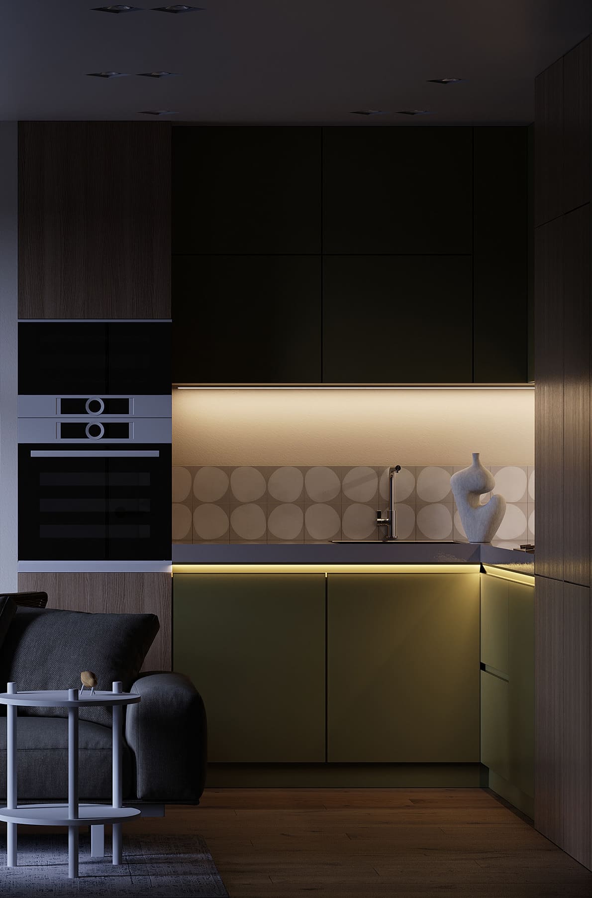 Установка разного освещения зон кухни-гостиной — один из самых простых и популярных способов зонирования помещений.