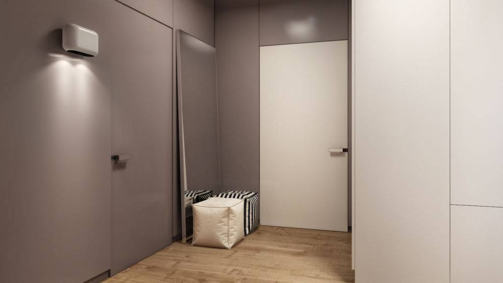 Мебель должна быть выполнена в светлой палитре, что придаст коридору объемности